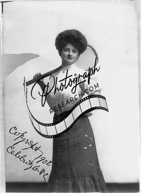 'Tennis Girl',woman posed with tennis racket,c1906