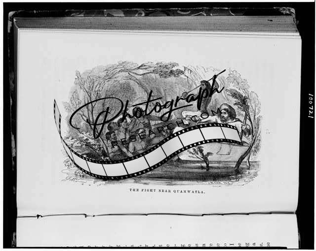 Fight near Quamwatla,canoes,spears,weapons,water,book illustrations,Jamaica,1855