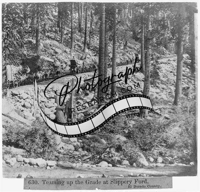 Teaming up the Grade at Slippery Ford,El Dorado County,California,CA,1866,trees