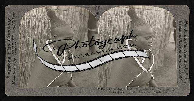 This Zulu bride takes great pride in her coiffure, Natal, Union of South Africa