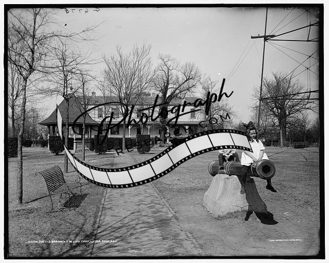 Old barracks,children playing outdoors,City Park,Little Rock,Arkansas,AR,c1905