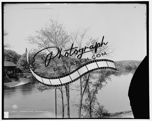 Merrimack River,railroad tracks,water bodies,Manchester,New Hampshire,NH,c1908
