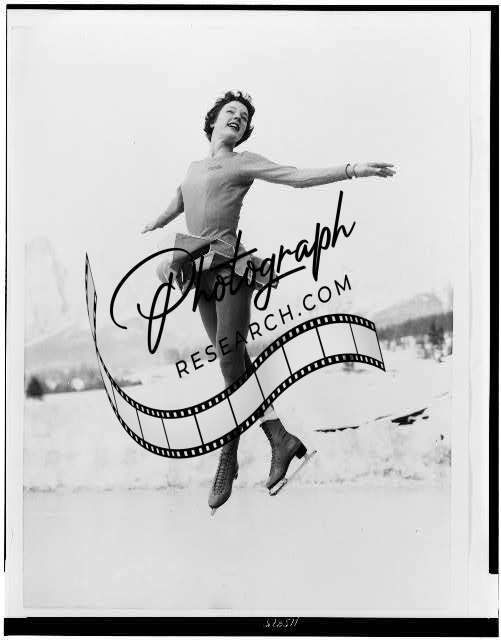 Tenley Albright,figure skater,in mid-air leap at practice in Cortina,Italy,1956