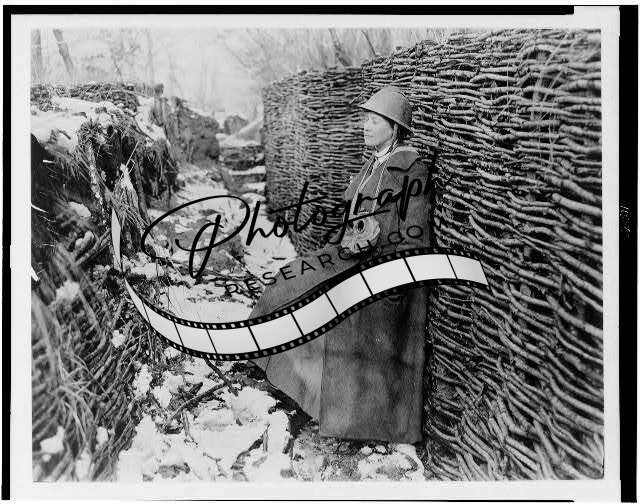 Helen Johns Kirtland,Trench,World War I,WWI,wearing helmet,gas mask,1914-1918