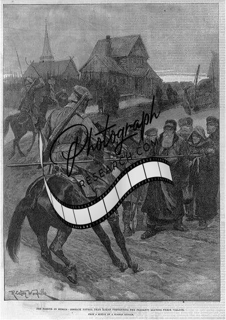 Famine,Russia,villagers,Cossack patrol near Kazan,1892