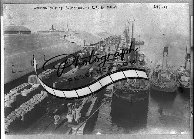Loading ships of S. Manchuria R.R. at Dalny,Darien,Manchuria,1908?,train