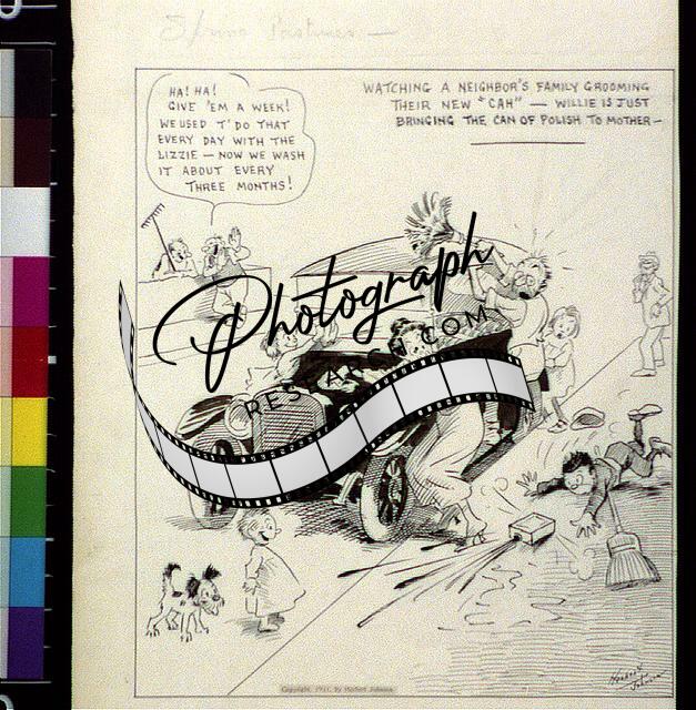 Spring Pastimes,Family washing Car,Automobile,Accident,Herbert Johnson,Cartoon