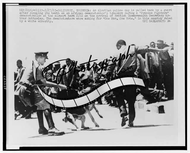Police Dog attacking Zimbabwean Man,Demonstration,Civil Rights,Zimbabwe,1965