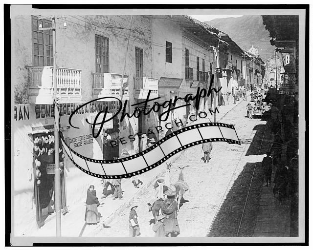 Calle del Marquez,Cuzco,Peru,busy street scene,people,llamas,May 1,c1916