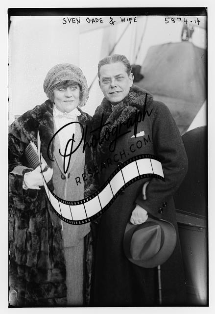 Sven Gade,wife,couples,spouses,fur lined coats,hats,purses,Bain News Service
