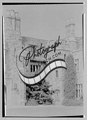 Title: Clarence McK. Lewis, Skylands Farm, residence in Sterlington, New York. Entrance and gable