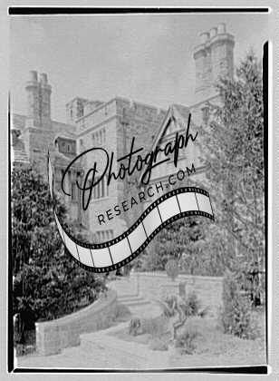 Title: Clarence McK. Lewis, Skylands Farm, residence in Sterlington, New York. Mass view from south, terrace foreground