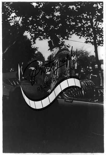 Robert Weeks DeForest,1848-1931,in open limousine,in top hat,fur coat
