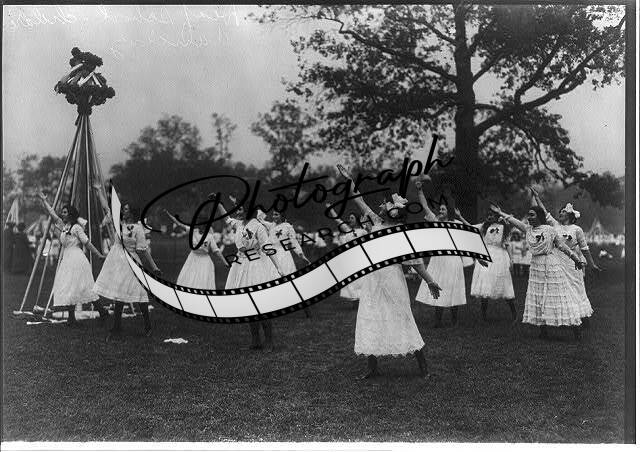 New York City school children,Teen-aged girls dancing,May Pole,1913,white dress