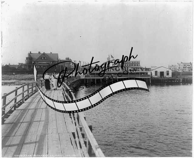 Far Rockaway,LI,from the Inlet,people walking on foot bridge,bowling alley,c1904