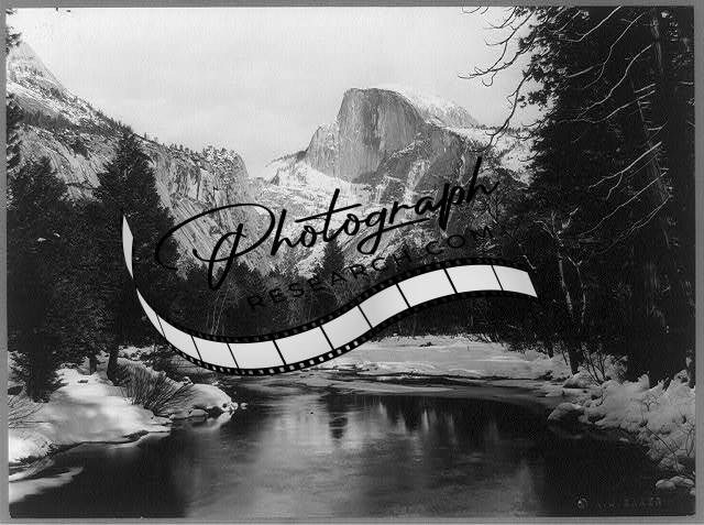 Half Dome,Yosemite National Park,mountains,river,trees,snow,California,CA,c1922