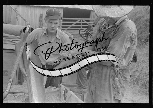 Farmer sampling wheat as it comes from separator,Central Ohio,OH,FSA,1938,1