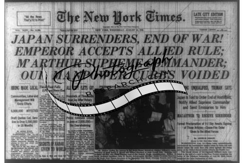 Photo of Newspaper Headlines,New York Times,Japan Surrenders,August 15,1945