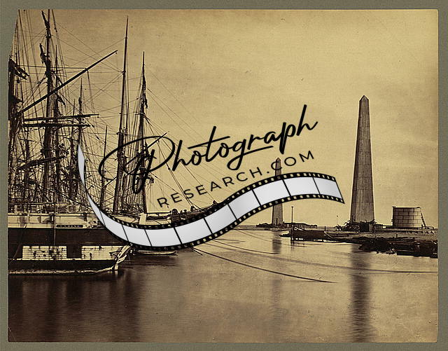 Suez canal entrance at Port Said,Egypt,Obelisk,Harbor,Ships,Francis Frith,c1856