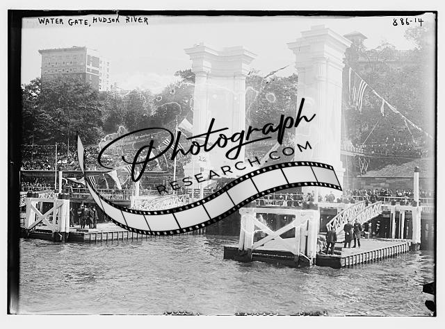 Water gate,Hudson River,New York,NY,people,flags,September 1909