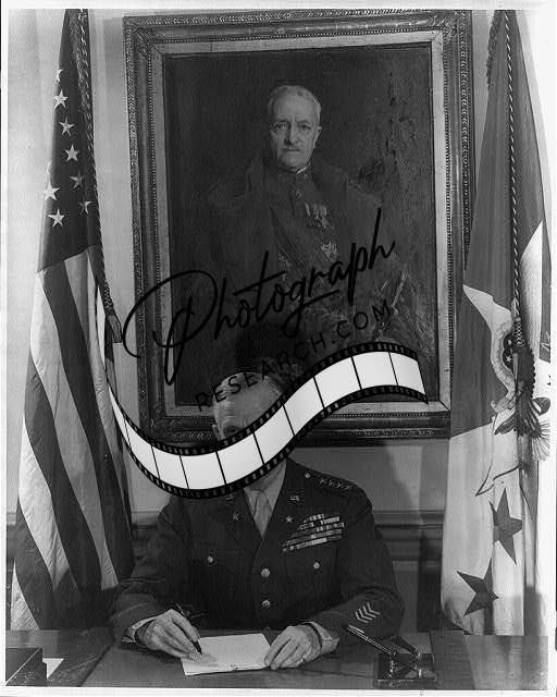 Marshall,desk,Pentagon, portrait of Pershing,c1945
