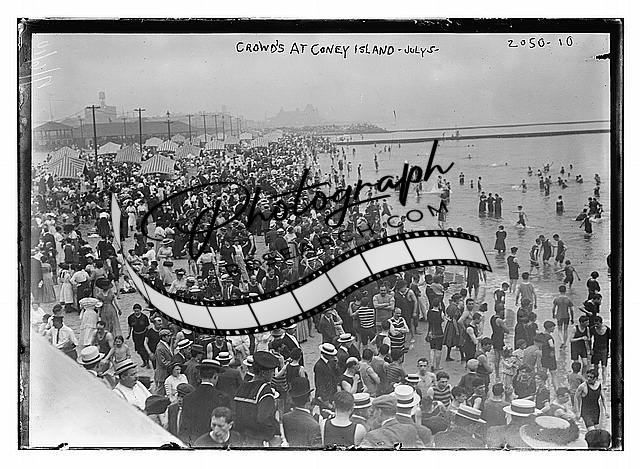 Crowds at Coney Island,New York,July 5th,bathers,bathing suits,beach,water