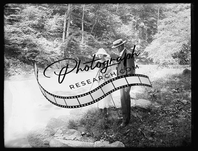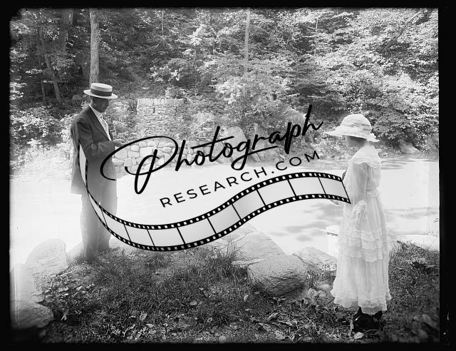Woman with camera,man in woodland setting,National Photo Company,c1915