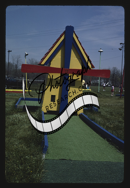 Title: Clown at 18th hole, Vinson's miniature golf, Taylor, Michigan