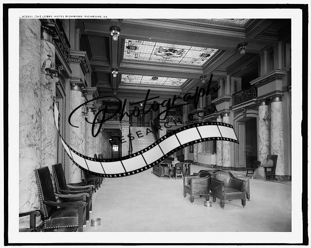Lobby,Hotel Richmond,interiors,chairs,furniture,skylights,stair,Virginia,VA,1900