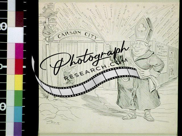 Man dressed as Saint Patrick at gateway to Carson City,March 1897,Boxing