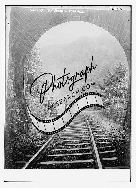 Swiss guarding tunnel,Railroad tracks,man,Bain News Service,trees