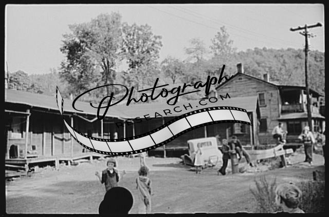 Title: Along main highway, center of mining town, miner's shacks in left background, Osage, West Virginia