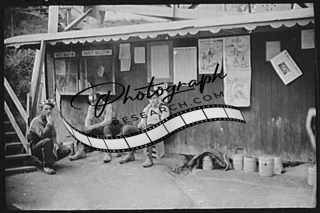 Title: Coal miners waiting for next trip into the mine, Maidsville, West Virginia
