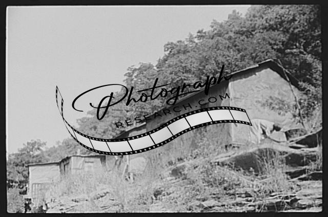 Title: Negro woman washing clothes outside of shacks along the river, on the highway between Charleston and Gauley Bridge, West Virginia