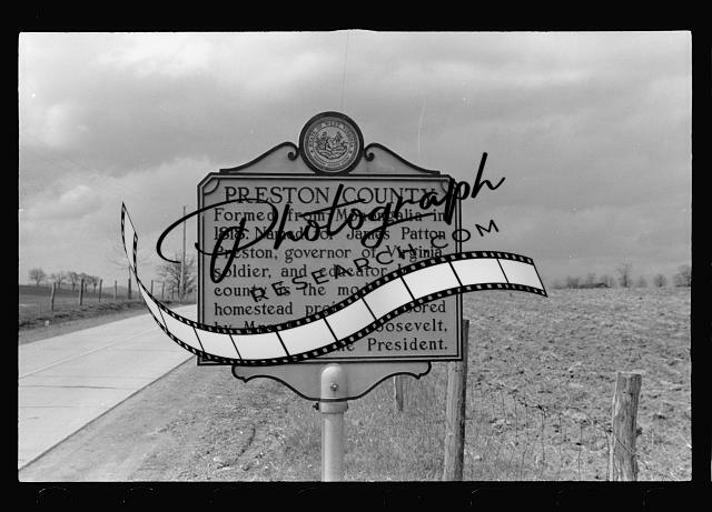 Entering Preston County,West Virginia. Sign refers to Arthurdale Project,1939