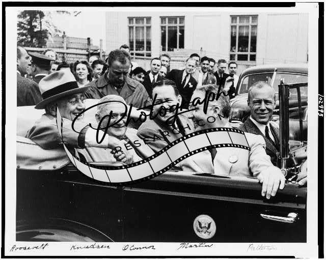 Glenn Martin,FDR,William Knudsen,O'Connor,Patterson,convertible automobile,1940