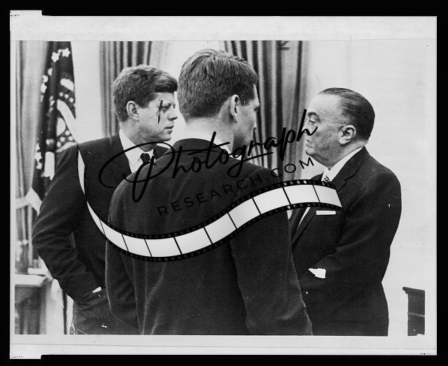 Sen. Robert F. Kennedy and J. Edgar Hoover; FBI chief says former attorney general increased wiretapping