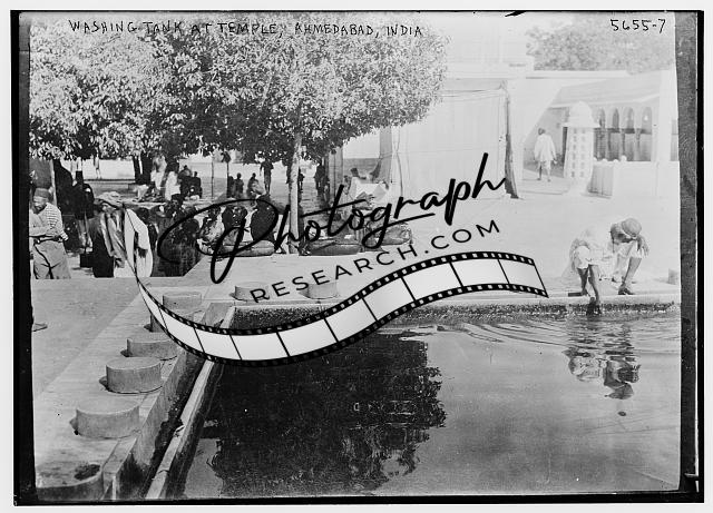 Washing tank,temple,pools,crowds,trees,plants,Ahmedabad,India,Bain News Service