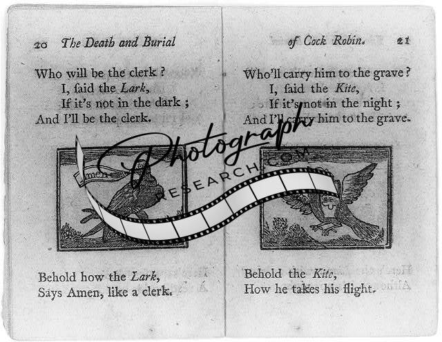 Title: [Illustrated pages from various early editions of the story of the death and funeral of 'Cock Robin', reproduced by the LCQJ, April 1973]