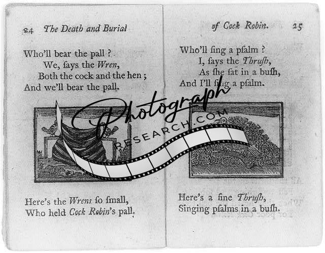 Title: [Illustrated pages from various early editions of the story of the death and funeral of 'Cock Robin', reproduced by the LCQJ, April 1973]