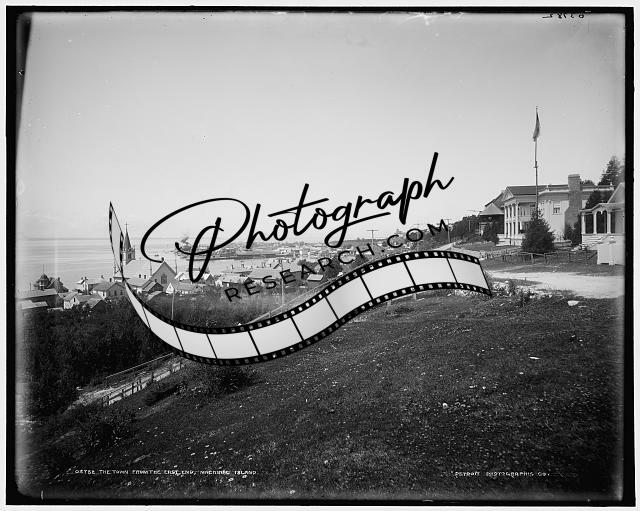 Town,east end,buildings,flag,Mackinac Island,Michigan,MI,Detroit Publishing,1880