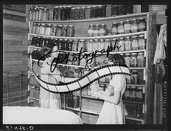 Title: Through help and supervision of home and field supervisors, diet and health of many RR (Rural Rehabilitation) families have been greatly improved. The Peacock family (RR four years) had for dinner (noon meal): sausage, cabbages, carrots, rice, tomatoes, cornbread, canned figs, bread pudding and milk. They did not know that a picture would be made. Coffee County, Alabama