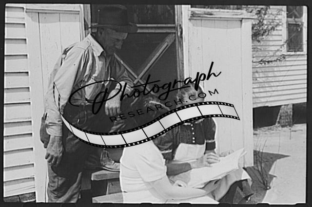 Title: Miss Hesterly, FSA (Farm Security Administration) home economist, following Adkins family, FSA rural rehabilitation clients, into their house to help make out their home and farm plans. Coffee County, Alabama