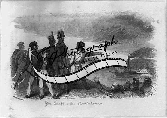 General Winfield Scott,BARCELONA,men,cannon on bank,river boat,ship
