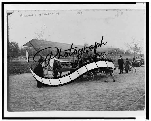 Pischoff aeroplane,man pushing propeller as if to start the engine,airplane,1908
