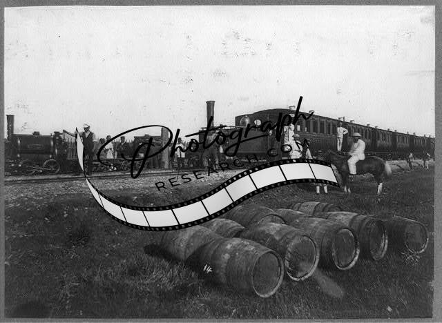 Woosung Railroad,to Shanghai,trains,tracks,transportation,barrels,China,1875