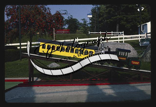 Title: Cog railway sign, Funspot mini golf, Route 3, Weirs Beach, New Hampshire