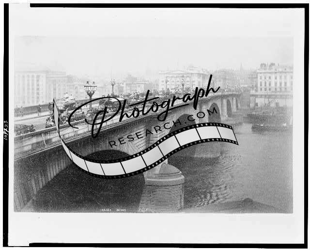 London Bridge,carriages,coaches,river,water transportation,travel,England,c1900