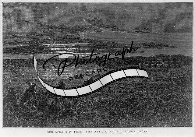 Stealthy foes,attack,wagon train,Our Wild Indians,1882