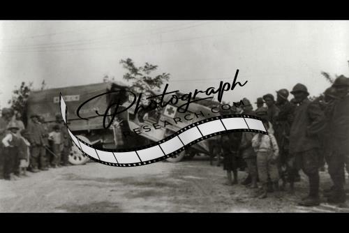 Wrecked American Red Cross Ambulance being towed by truck,Italian Front,WWI
